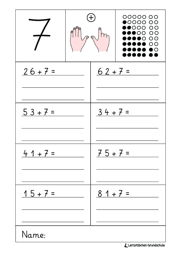 zu den Arbeitsblättern zum Rechnen +5