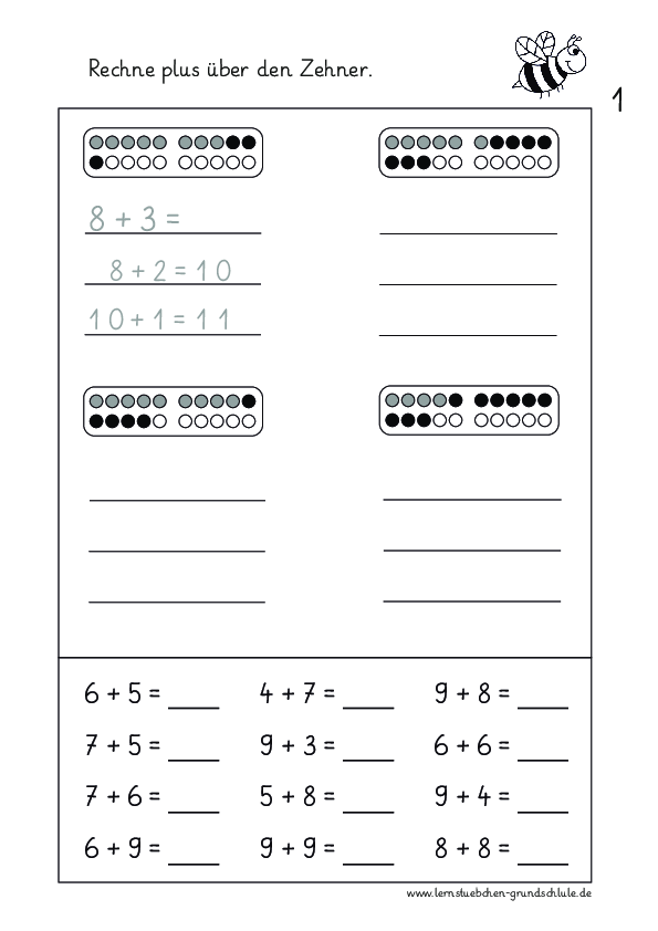 und im gleichen Atemzug die Arbeitsblätter zum ersten Addieren im Zahlenraum bis 1000, aber immer mit Übergang, sodass man damit auch Kinder versorgen kann, die mit dem Stellenwertsystem schon sicher umgehen können ...