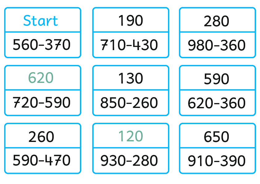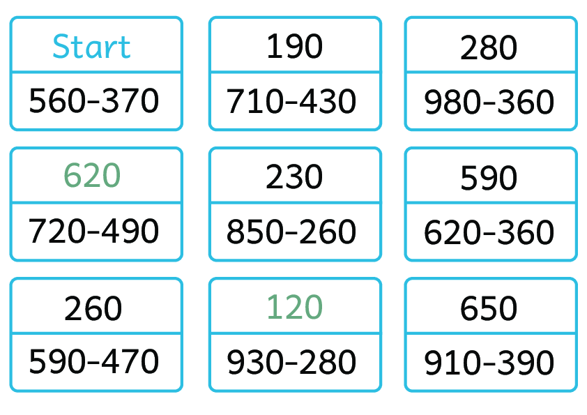 Material Klasse 3 ZR 1.000 mit HZ-Zahlen mit Übergang mit H-Übergang Kopfrechnen Kopfrechenspiel mit LösungDas Kopfrechenspiel zum Minusrechnen habe ich auch noch einmal gezinkt. Kindern, denen man eine grüne Ergebniszahl gibt, müssen keinen Hunderterübergang rechnen. LG Gille